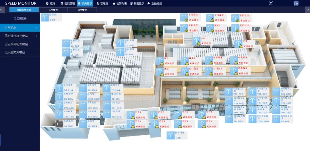 實現UPS、空調設備、漏水、配電、溫濕度、通風、防雷、消防、視頻、門禁、網絡設備及系統通信實時監控;